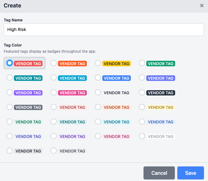 NOTE: User-level permission controls can be configured for each Tag Group, which can then be used to limit which internal users are allowed to edit which tags are applied to each supplier.